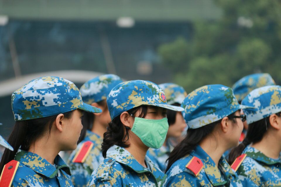 军训场上微笑的“口罩”女孩