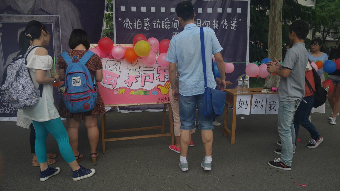 5月10日,为迎接母亲节的到来,,生科院青年志愿者协会以“妈妈我爱你”为主题,于上午11:30和下午5:30分别在嘉会园门口和大活门口摆点宣传,让同学们写下对母亲的深切祝福。
