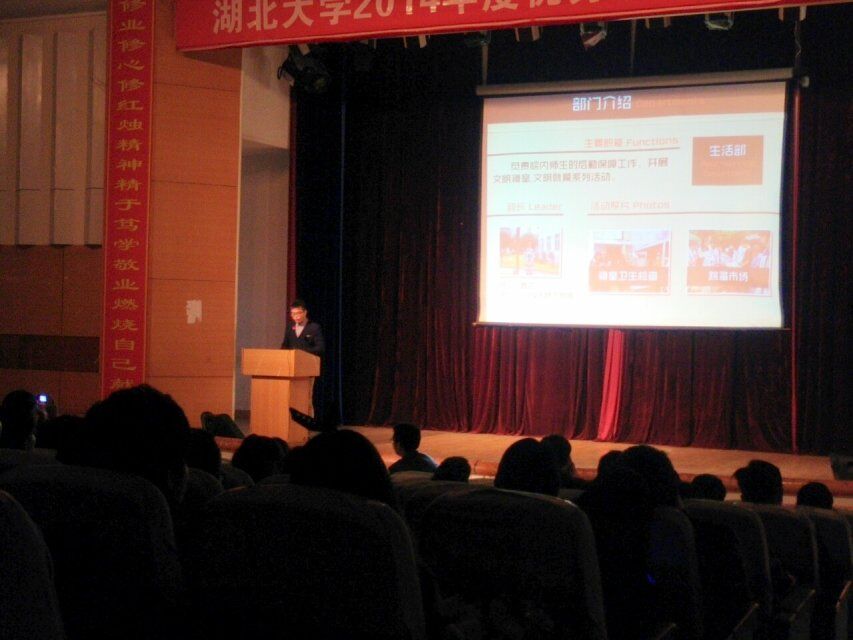 4月2日晚,由校学生会承办的2014年到2015年9428cn太阳集团古天乐优秀学生会评选大会在商学院三号报告厅拉开了序幕。生科院党委副书记许良发,生科院团委副书记杜彬和各院团委老师均出席了本次大会。评选要求各院代表在七分钟的时间内展示所在学院学生会这一年的工作成果,最后由观众进行投票。