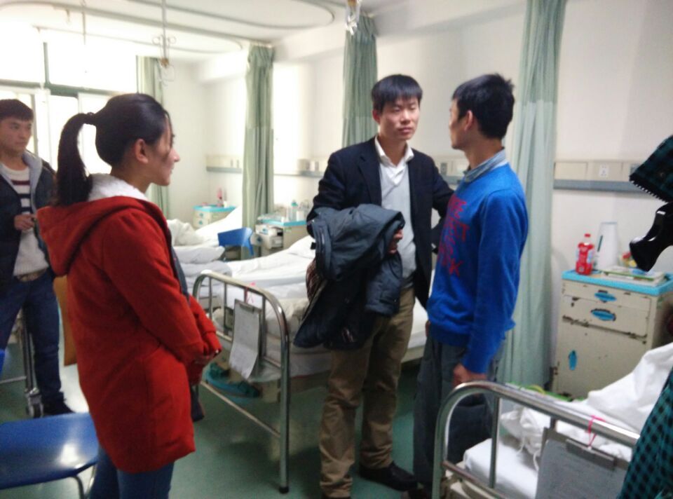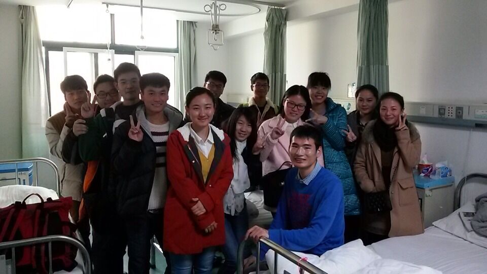 一句句感人的祝福,一声声亲切的问候,都让肃静的病房里充满了沁人的温馨。1月4日下午,生科院党委副书记许良发、14级药学班班主任段瑾和14级药学班同学代表共同前往医院看望因病住院的王刚同学,送去了生科院对其最诚挚的祝福。