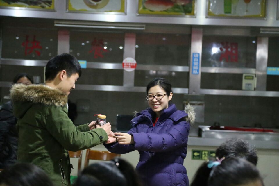 在晚会上,2014级生物技术班班主任马菲老师首先向全班的十个寝室送出了一瓶精美的巧克力,与此同时,各寝室同学将自己2015年的新年希望和祝福写在纸条上,用来换取2016年的元旦伴手礼。最后,班委们也向班主任和同学们送出了精心准备的福袋,祝福55名家庭成员幸福地度过羊年。而2013级和2014级生物科学试验班的联谊晚会更是一颗璀璨之星,他们以一场华尔兹舞蹈拉开序幕晚会,活动内容非常丰富,歌曲接龙、抢板凳、筷子传钥匙扣等互动小游戏,以及最后惊艳的舞蹈表演也给晚会增色不少。除此以外,14级生物工程班别出心裁地开展了包饺子比赛,同学们在竞争中合作,在合作中感受班集体的快乐。据悉,其他班也将进行各种各样的活动。