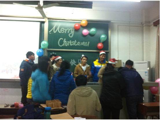 12月21日晚七点,在教2-310,14生科类班级为了喜迎双旦,展望美好2015,特地举办了一场主题为“圣诞晚会”的主题班会。