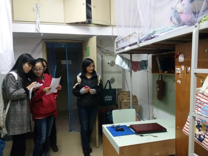 晚上6.00,全体学生会干事在图书馆楼下集合,分配寝室检查负责人员,并向了解学习查寝过程中注意问题。此次全院查寝主要对:宿舍内的卫生情况,物品摆放是否整齐,是否使用大功率电器,寝室里学习氛围等四个方面进行了检查。经过检查员们的考察、打分,总分排名前十一的宿舍将会获得文明寝室的光荣称号。