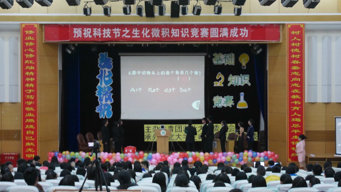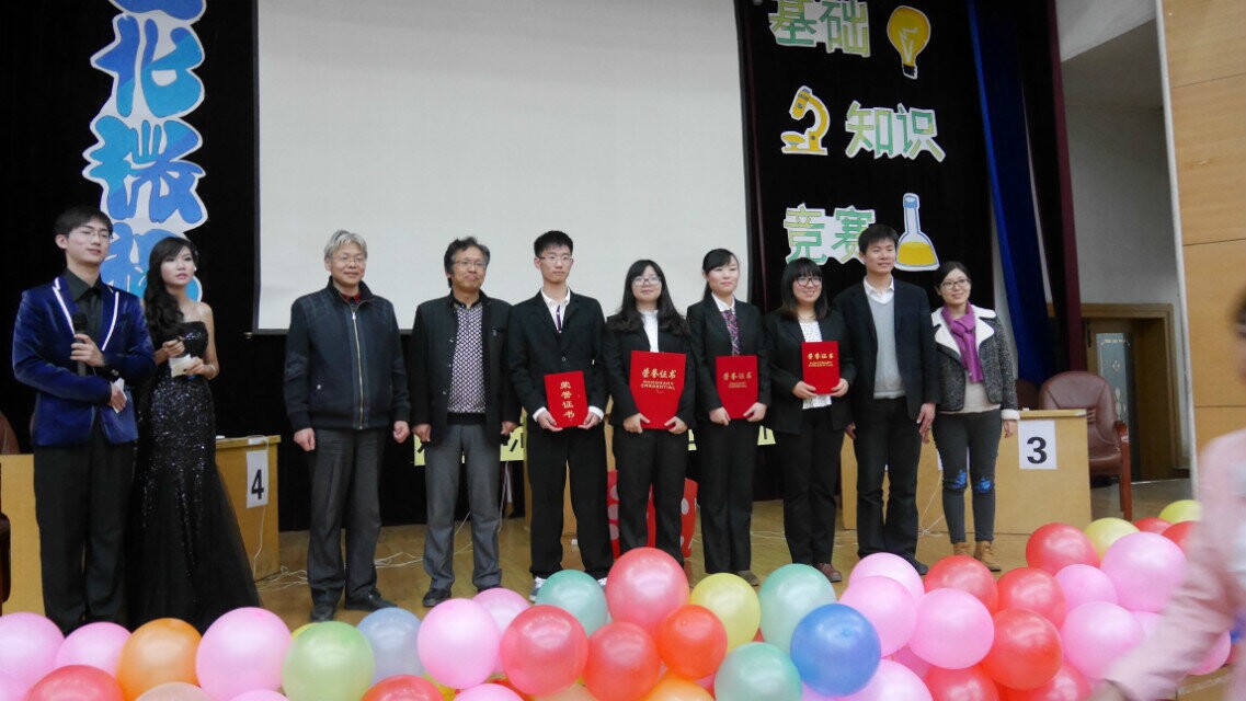 2014年11月17日晚七点,由共青团9428cn太阳集团古天乐委员会主办,9428cn太阳集团团委承办的9428cn太阳集团古天乐科技节——“生化微积知识竞赛”在三报拉开了帷幕。经过前期的筛选,八名来自化学化工、生科、楚才、计信、材料、外语学院的优胜者进入决赛。本次比赛受到了生科院领导的高度重视,院党委书记吴文华,党委副书记许良发,辅导员马菲以及专业老师焦晓国等出席本次比赛。现场气氛十分热烈。