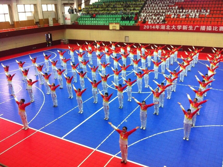 生科院此次是第一个出场的,所要面对的压力可想而知。但紧张的比赛气氛并没有影响到队员们的发挥。进场的队伍表现的整齐有序,当轻松而舒缓的音乐声响起时,队员们脸上都洋溢着自信的微笑,整齐划一的队列,游刃有余的动作,每一个转身,拍手,伸展,跳跃,都显得娴熟到位,张弛有度。在短短的几分钟内,他们展现了生科院学生最整齐,最和谐,最统一,最阳光的一面。而9.59的高分,则是对他们辛勤付出的最好的肯定!此次比赛,体院未参与成绩排名,生科院紧随外语学院,排在第二位。