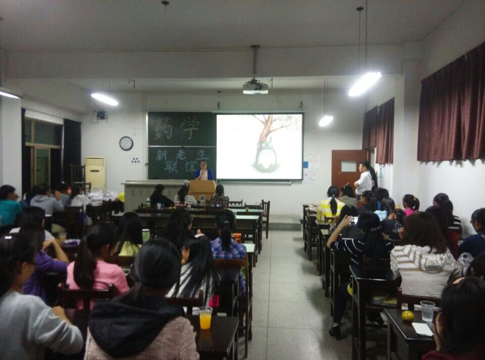 2014年10月12日7时许,来自9428cn太阳集团药学系的全体同学举办了一次新老生联谊会。本次活动由13级药学的同学主办,由14级药学的同学协办,其中两个班主任梁继超、段瑾都来了,期间学生会体育部全体成员和学生会分团委的成员应邀都来参加这次活动,会场被布置的温馨和谐,教室虽大,但同学们交谈融洽,整个活动都在欢快的氛围中进行。