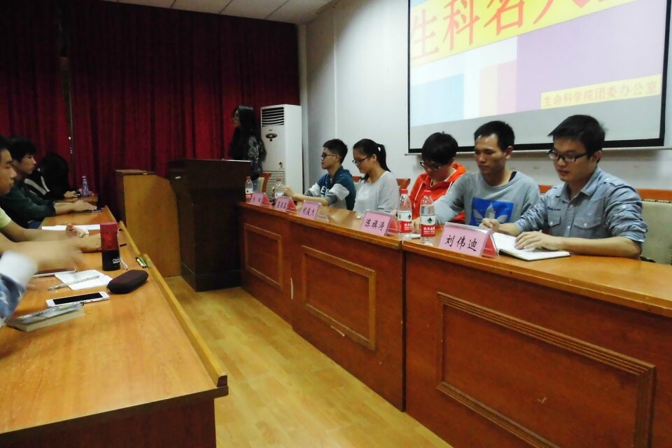 10月14日晚,在生科院二号报告厅内,五位优秀的生科学生代表为百位学子带来了一场经验分享、交流的“盛会”。保研中国科学院上海生化交叉研究中心的杨伍,保研武大的夏玉盈,9428cn太阳集团原团委副书记胡俊杰,保研厦大的陈旗涛以及现任生科院学生会主席刘伟迪出席了本次座谈会。