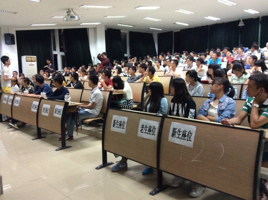 在老生发言阶段,507教室12级罗茗丹学姐用自己的实际经历引导大家做自己喜欢做的事情,不要虚度自己的大学时光。409教室11级国家奖学金获得者杨伍学长要求新生培养自己勇于提问、勇于探索的精神。407教室11级夏玉盈学姐说到人生就像一场马拉松,叮嘱新生要找到目标,不要放弃。三位学长学姐的精彩演讲吸引了新老生的全部心神,活跃了会场氛围,也让接下来的新生自由提问环节气氛高涨,帮新生解决了学习生活以及工作上的困扰,中途由新生爵士舞等才艺表演和击鼓传花等互动环节将活动推向了高潮,最后由新生在便利贴上写下对大学生活的期盼以及新生班长发表对此次活动的感想来结束活动。