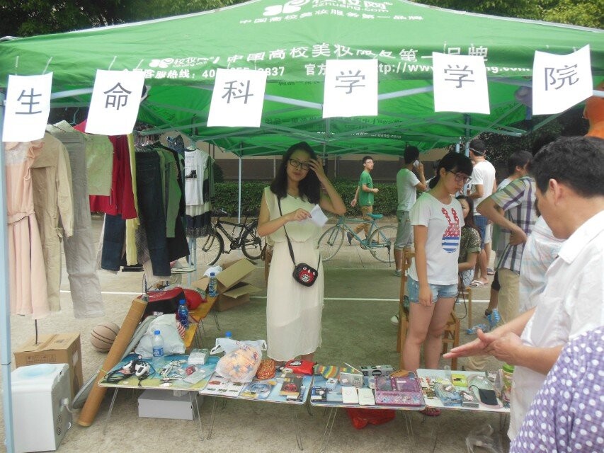 活动正式开始于上午9点,可是不到八点半,各个学院销售的电风扇不是基本销售告罄就是被预订完。而在我院的二手摊位上,不光挤满了各院的学生,连食堂的叔叔阿姨们也被吸引过来。在标价25元的储物箱面前,一位阿姨难掩喜悦之情,一手拿着储物箱,一边与销售员谈道:“便宜5块,我们买两个”。工作人员连忙解释道:“阿姨,这真不好意思,价格都是别人定的,我们只是负责卖,如果卖少了,我们可得赔钱”。就这样,经过几个回合的“唇枪舌战”,价格终于被敲定了。心满意足的阿姨提着储物箱,又走向了另一处摊位,开始了新的“淘宝之旅”。学生们也成群徘徊在各个摊位面前,希望淘到自己需要的“宝贝”。活动一直持续到了下午,当大多数宝贝都被抢走,顾客们的购物热情才如同夕阳的余热一样慢慢消散。