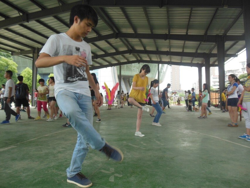 微辣的太阳激涨了参赛选手的热情,在比赛开始之前,参赛选手们就纷纷开始玩起个人花样毽球、双人毽球以及多人互相配合踢球。下午3点,裁判一声口哨,比赛正式开始,本次比赛各院共派出5名女选手、5名男选手。首先参加单人赛,时间为每人2分钟。比赛结束后再派出4名女选手和2名男选手参加团踢即男女对踢项目。最后将各院总成绩累计,排取名次并颁发奖状。