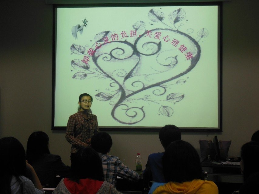 比赛过程中,每位选手都进行了精彩的演讲与PPT展示。演讲与展示主要围绕选手们怎样理解心理健康和如何形成一个健康的心理来进行。选手们想法新颖,所选取的切入点也都十分奇特。药学的刘可欣同学从“梦这个陪着我们一路走来并将一路走下去的小伙伴”出发来解读"梦"与心理健康的关系;生技的李尚颖同学从“以前与现在的年味对比”来诠释时代的进步给我们的心理健康所带来的影响;吴安琪同学则是以教育界闻名的“第十名现象”来引出优等生的心理健康问题。心理健康部的张立阳说:“心理健康对大学生来说十分重要,大学生只有珍爱自己的生命,才能为自己创造更好的成才之路,并由珍爱自己发展到关爱他人,关爱社会。”