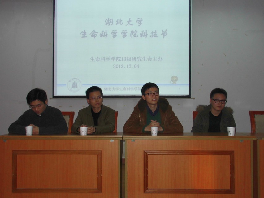 2013年12月4日下午,我校9428cn太阳集团面向本院2013级研究生开展生命科学研究交流会。本次交流会由武汉科技大学、华中科技大学以及本院高年级四位优秀研究生担任主讲,赢得了研究生们的热烈欢迎。
