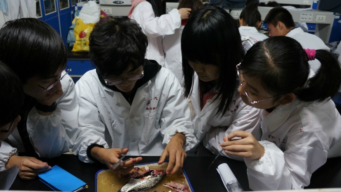 为了响应学校科技节的号召,增强广大学生对生命科学的了解,我校9428cn太阳集团于11月15日在生科院二楼动物学实验室举办鱼外部形态观察与内部结构解剖讲座。此次讲座由生科院副教授刘杰老师担任主讲,吸引了大批学生参加。