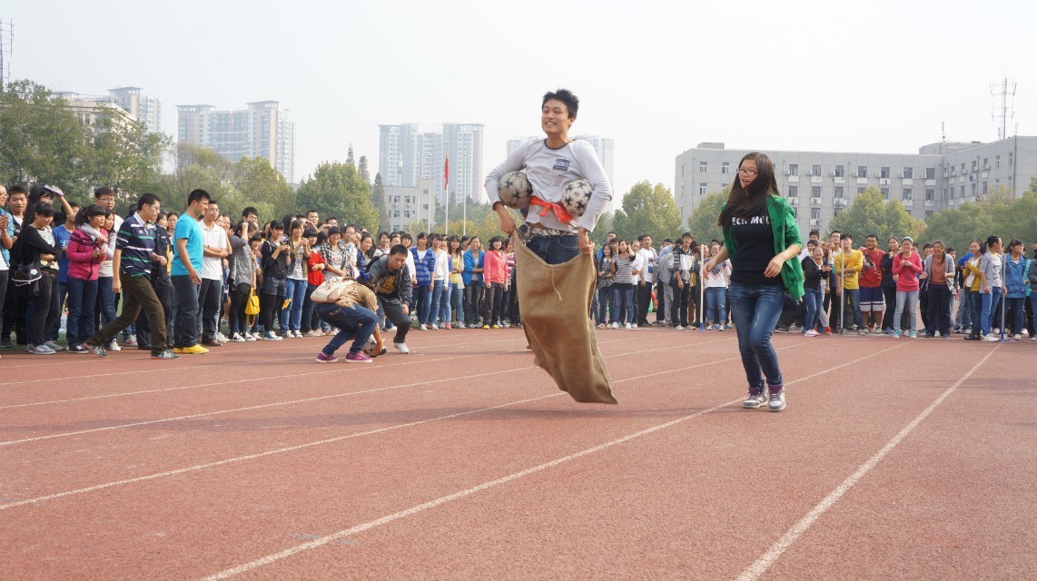 作为第一个项目,龙凤戏珠一开始便吸引了众多目光。竞赛场地周围,帮忙加油助威的观众挤得不得不踮起脚尖,但他们的观看心情显然并未受到影响,依旧兴奋的关注赛况。赛场上两两一组,男女搭档共排球赛跑。队员既要加快速度又要保持步伐一致,挑战难度很高。而之后的两人三足就更需要两人步调一致了,一“脚”不慎,那便“前功尽弃”了。整个竞赛过程中笑料不断,趣味多多。指令枪虚发、队友相互绊倒而与大地亲密接触等意外使得现场欢笑连连。而一些迫切想到达终点的同学因用手托球前进,只能在一片“违规”的呐喊声中遗憾出场了。搞怪的袋鼠运瓜项目则把现场气氛推向高潮,套上麻袋变身袋鼠的同学们在运“瓜”的过程中出现各种奇怪的姿势,逗笑一众看官。“这也是比赛吗?太好玩了!”望着吃力运“瓜”的“袋鼠”们,一名观看的同学笑道。