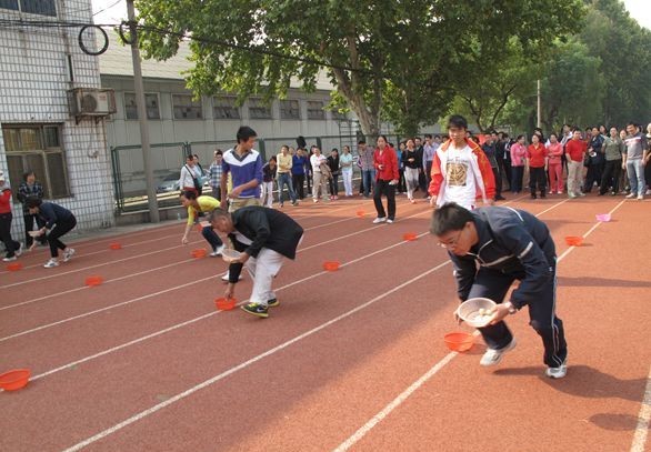 10月24日,一年一度的教职工康乐运动会在学校一号体育场举行。本次运动会设立个人项目4个:圈内垫击球、地滚球击弹、立定跳远、仰卧起坐;集体项目6个:两人三足迎面接力、抢种抢收、螃蟹背西瓜、集体跳绳、障碍跑、呼啦圈传递接力。比赛内容丰富,形式多样,趣味性强。场上运动员们争分夺秒,场下拉拉队员加油呐喊声不断,大家尽情地享受着这一体育盛会。