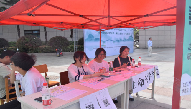 生科院内,工作人员也在指导同学们参与游戏,并郑重地盖下印章。