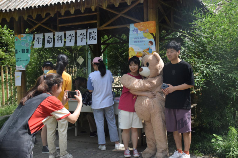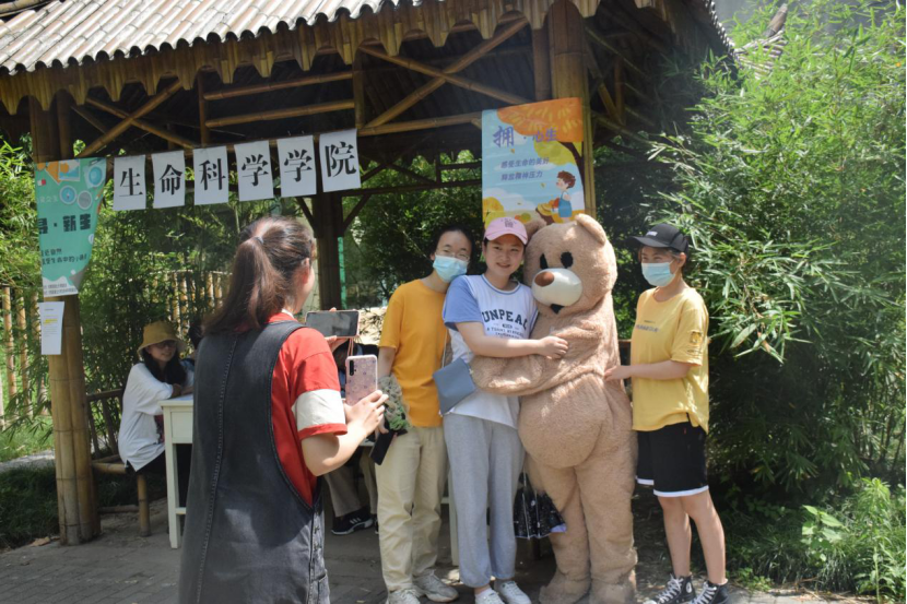 很快就来到了终点,玩偶小熊早已等候已久,同学们与玩偶拥抱,合照,留下特别的纪念。