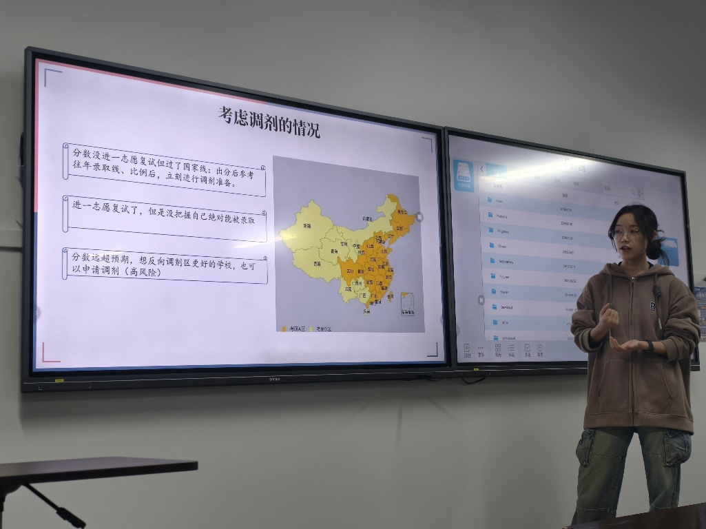 最后,班主任胡玉梅老师总结道:“考研复试既是考验,更是机遇。愿诸位以今日所学为刃,自信迎战。”此次班会从考研同学实际需求出发,帮助同学们掌握复试和调剂方法,助力考研同学走稳走好升学“最后一公里”。