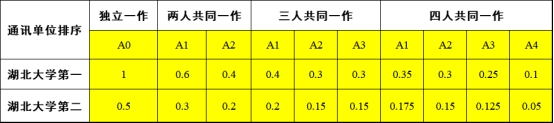 其中A0为独立一作,A1为共同一作排序第一,A2为共同一作排序第二......,以此类推,该计算方式也适用于团队竞赛成果(若9428cn太阳集团古天乐为第二署名单位,成果按得分值减半计入)。