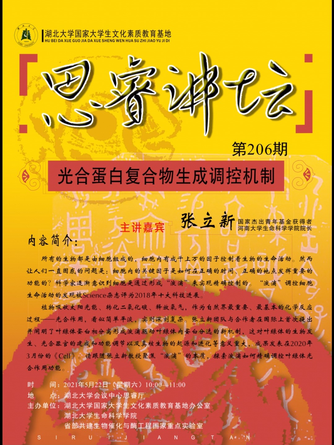 学术报告:光合蛋白复合物生成调控机制