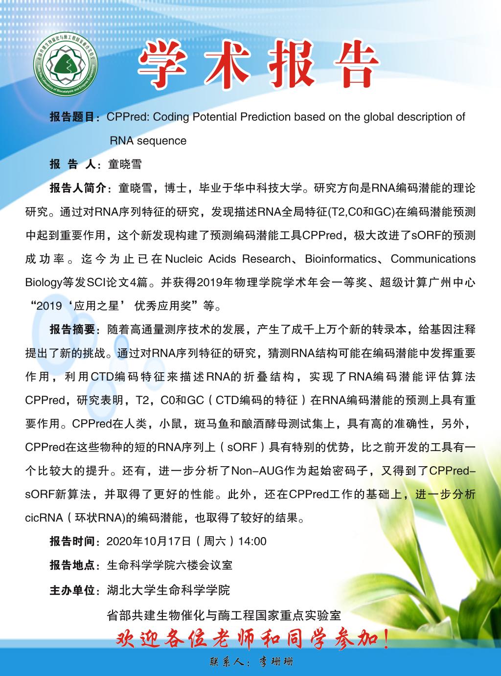 学术报告:CPPPred: Coding Potential Prediction based on the global description of RNA sequence