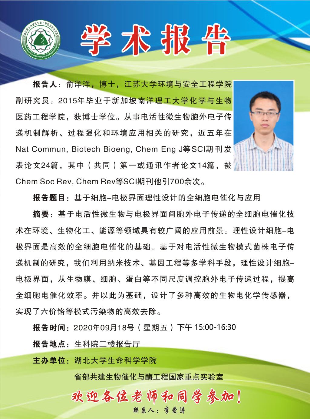 学术报告:基于细胞-电击界面理性设计的全细胞电催化与应用