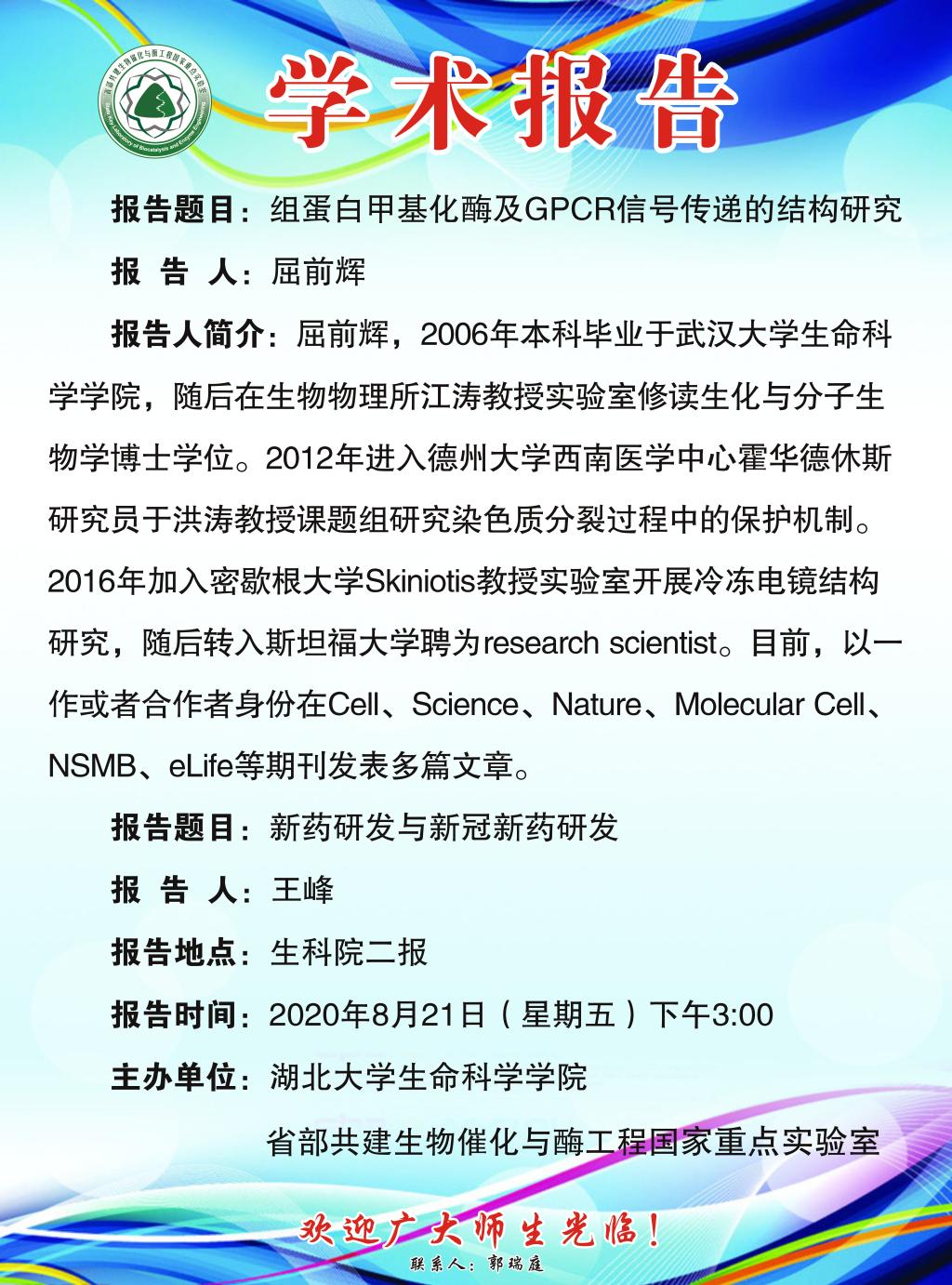 学术报告:组蛋白甲基化酶及GPCR信号传递的结构研究、新药研发与新冠新药研发