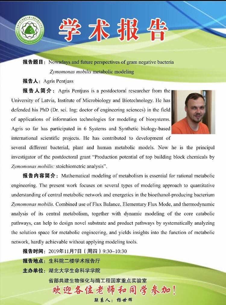 学术报告:Nowadays and future perspectives of gram negative bacteria Zymomonas mobilis metabolic modeling