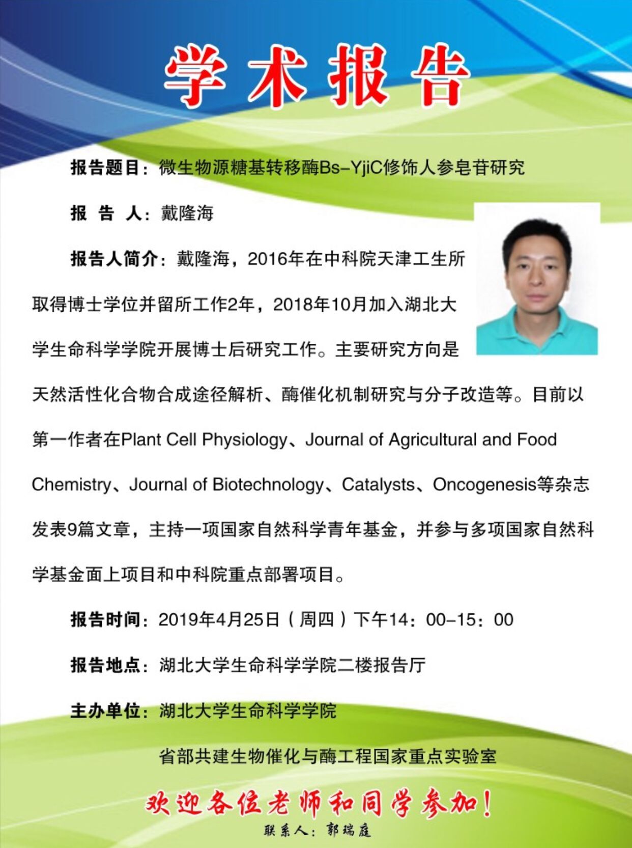 学术报告:微生物源糖基转移酶Bs-YjiC修饰人参皂苷研