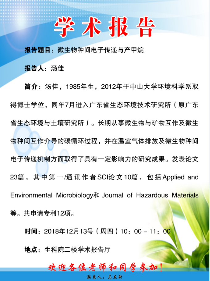 上一条:学术报告:蜘蛛哺乳解析及展望 下一条:学术报告:微生物中间电子传递与产甲烷