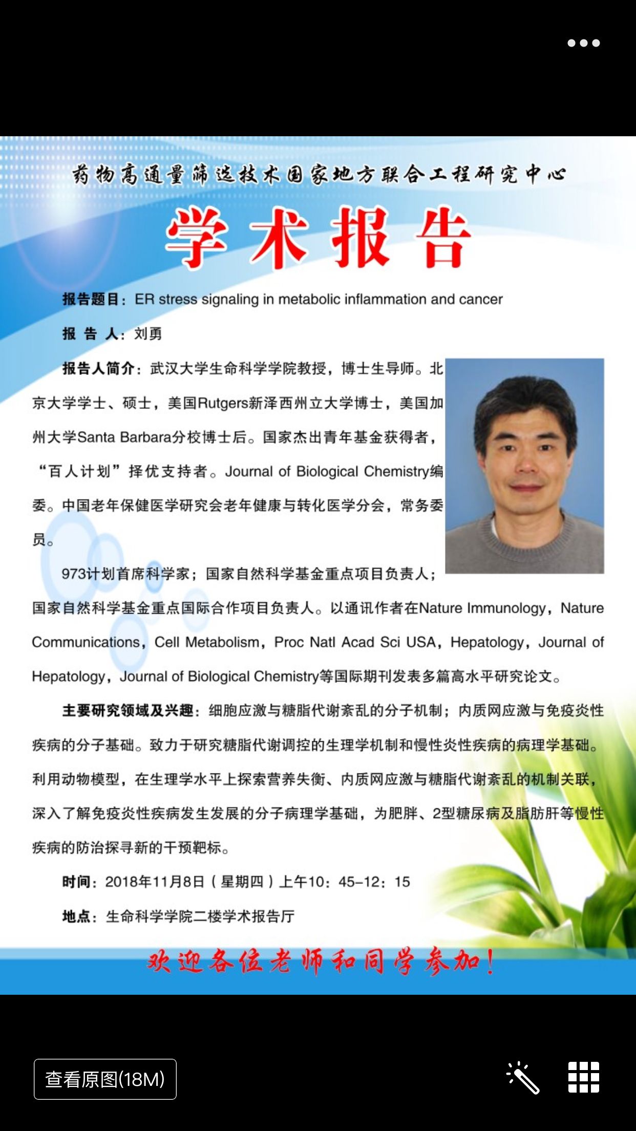 学术报告:ER stress signaling in metabolic inflammation and cancer