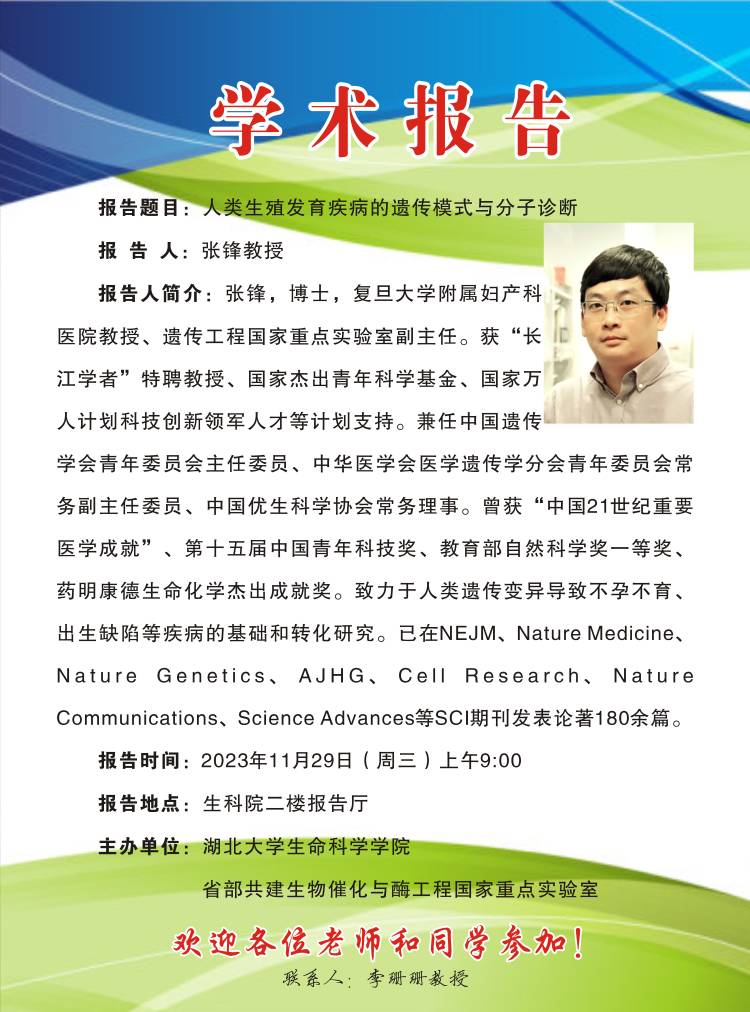 学术报告:人类生殖发育疾病的遗传模式与分子诊断