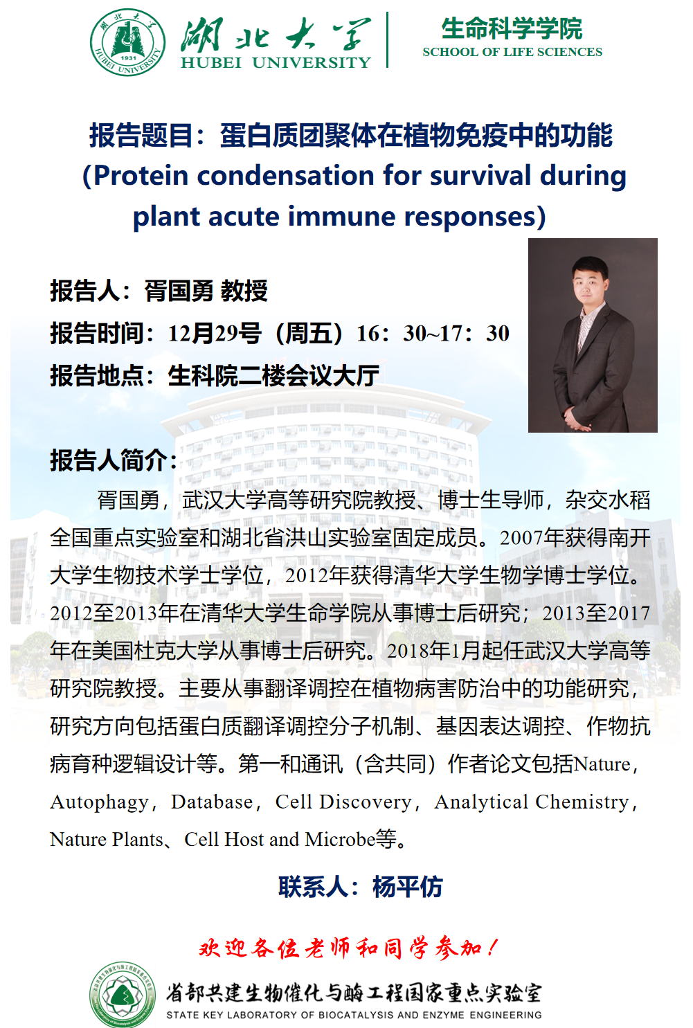 学术报告:蛋白质团聚体在植物免疫中的功能