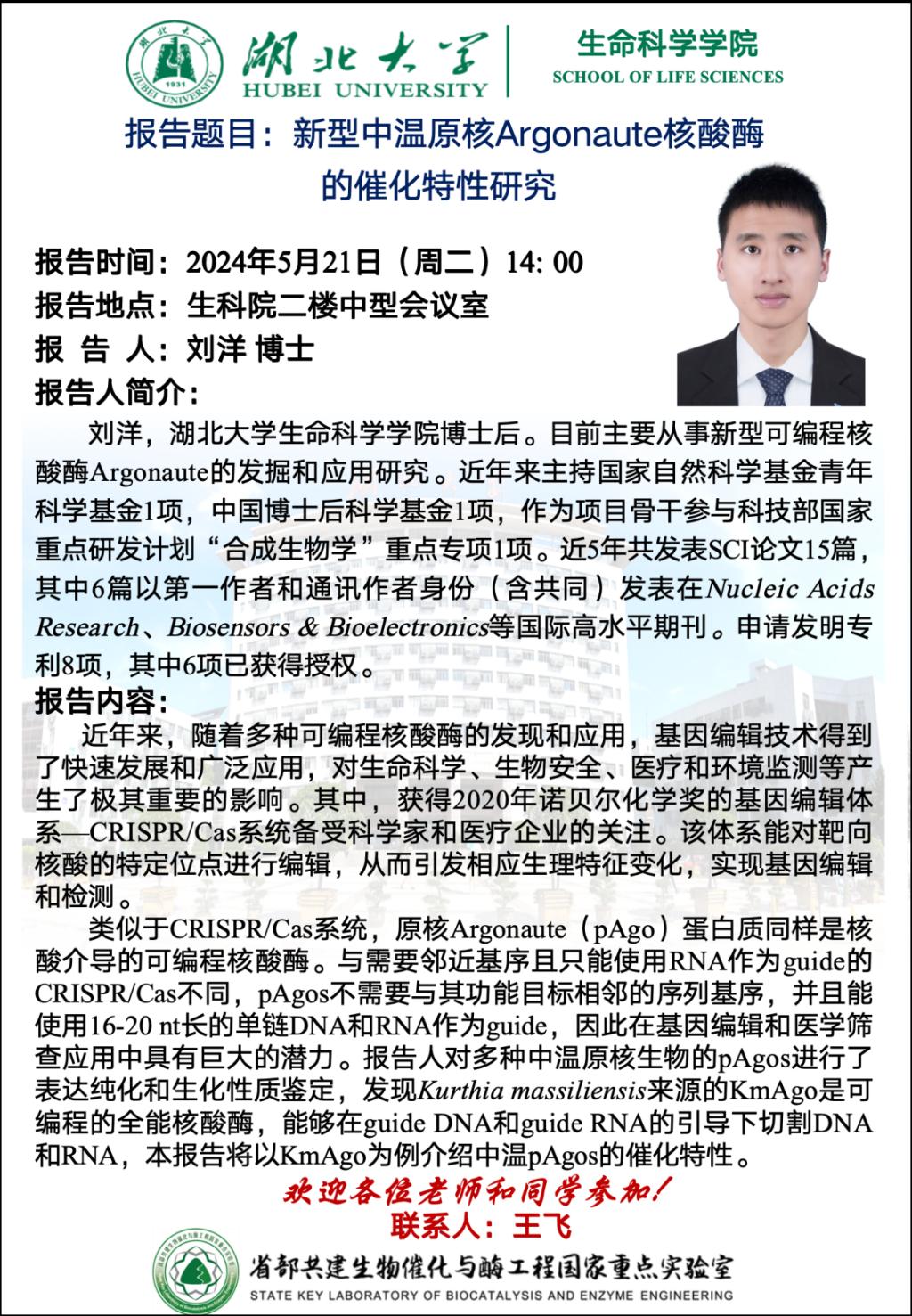 学术报告:新型中温原核Argonaute核酸酶的催化特性研究