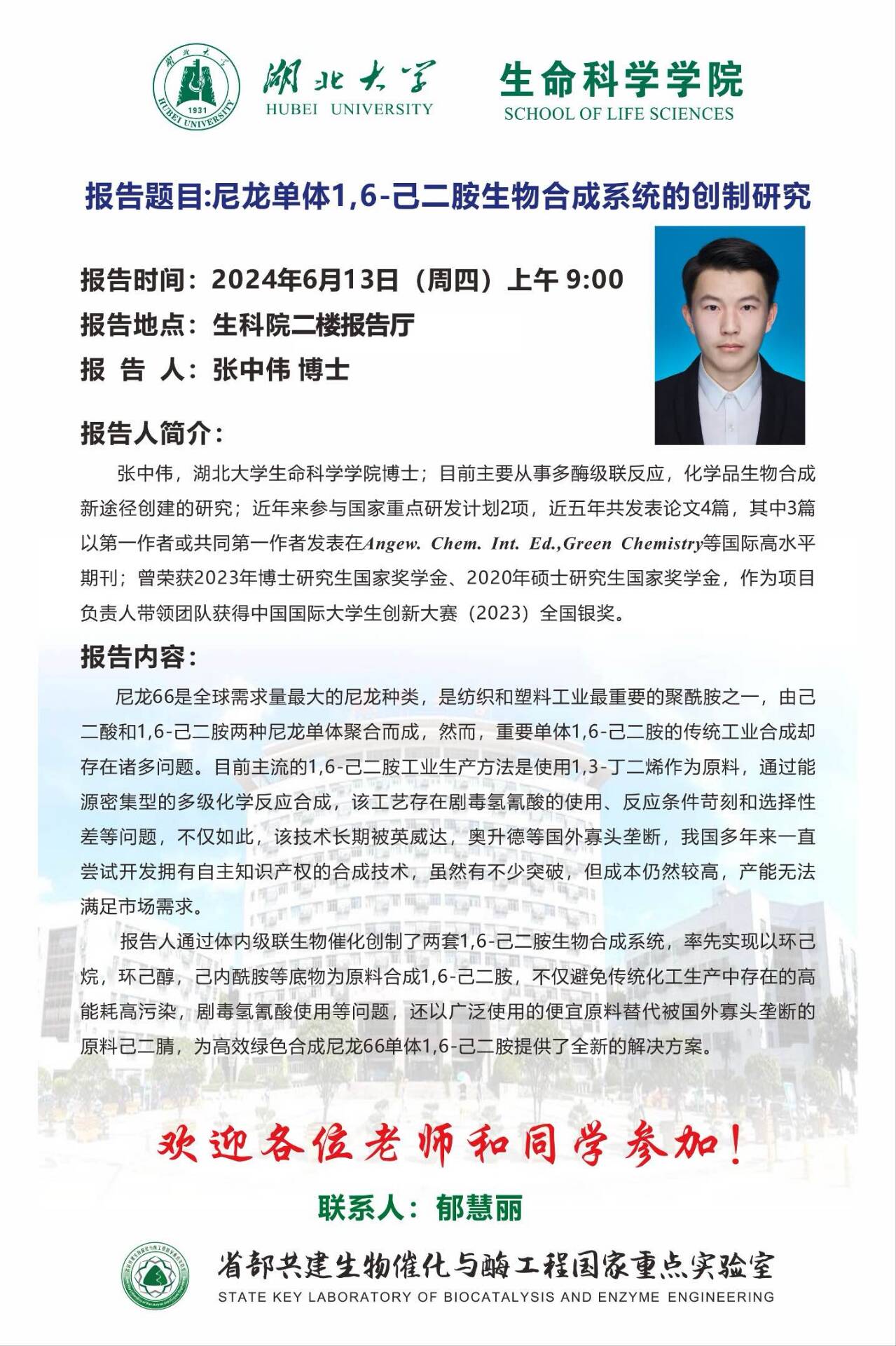 学术报告:尼龙单体1,6-己二胺生物合成系统的创制研究