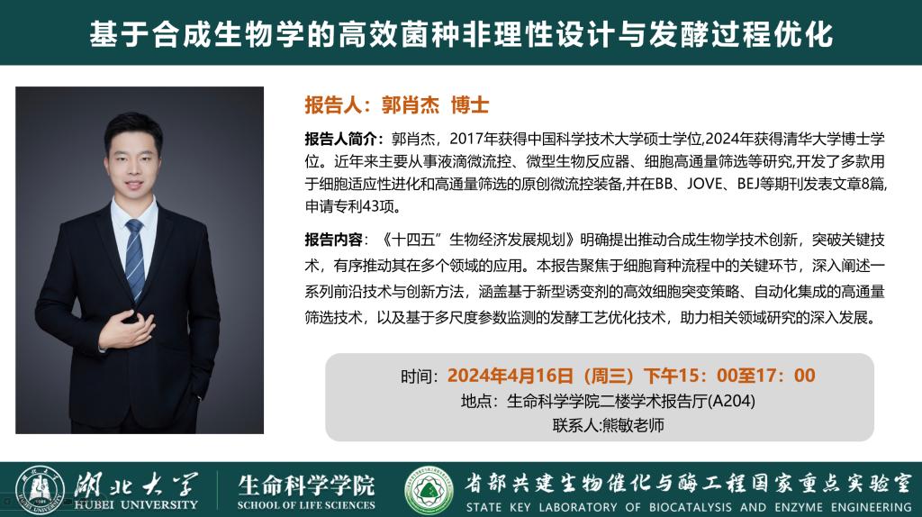 学术报告:基于合成生物学的高效菌种非理性设计与发酵过程优化