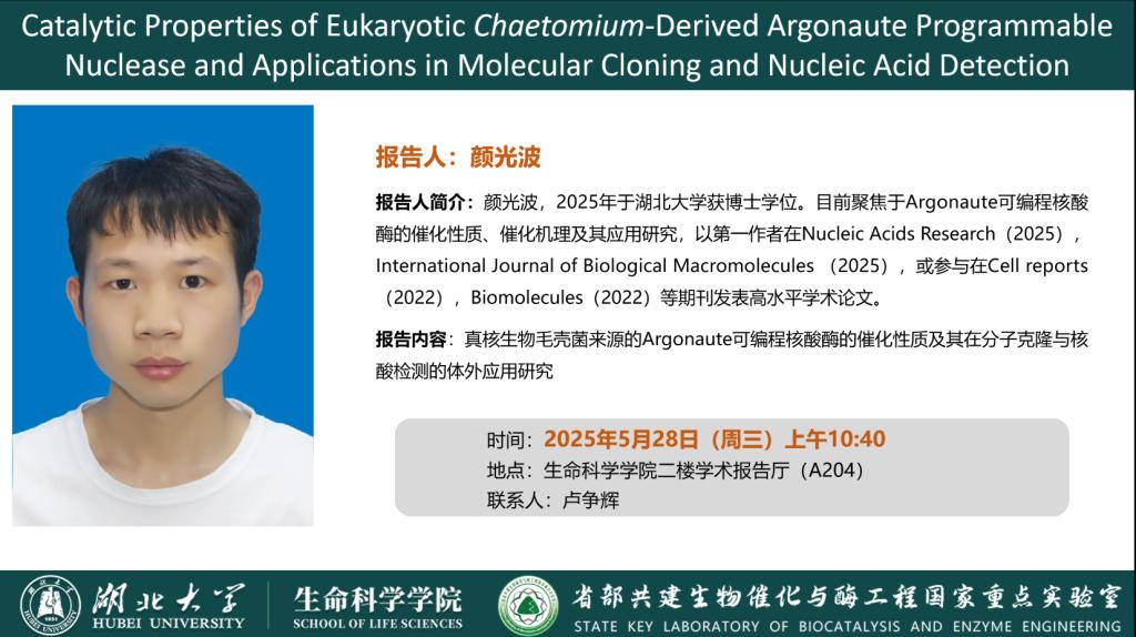 学术报告:Catalytic Properties of Eukaryotic Chaetomium-Derived Argonaute Programmable Nuclease and Applications in Molecular Cloning and Nucleic Acid Detection