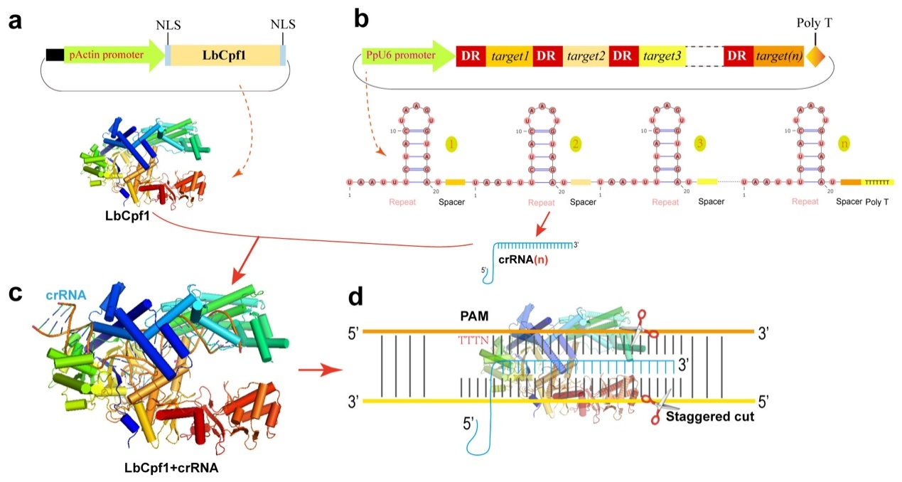 1. 建立苔藓植物第一例高效多靶标基因组编辑技术体系