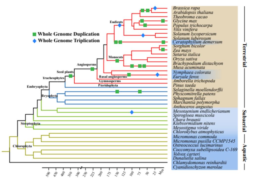 3. 阐释MEP途径新基因扩增和陆生植物适应性密切相关