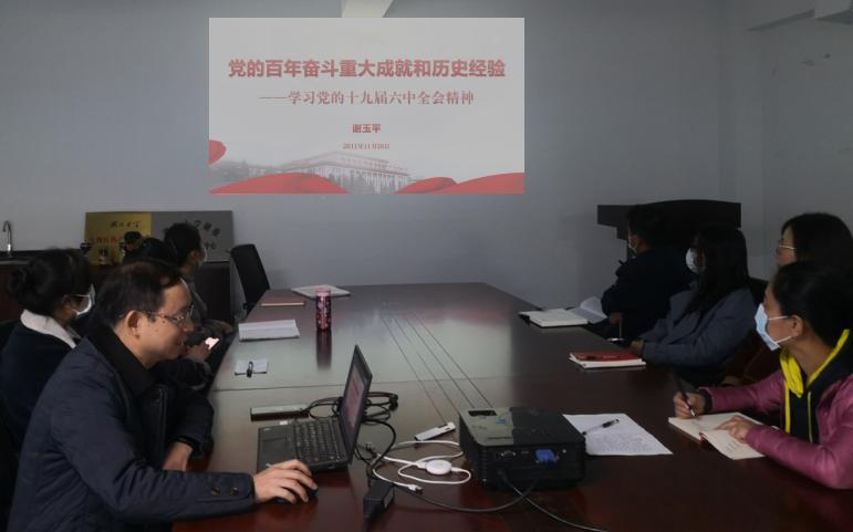 随后,学院党委书记谢玉平给大家上了“党的百年奋斗重大成就和历史经验——学习党的十九届六中全会精神”的微党课,重点就《中共中央关于党的百年奋斗重大成就和历史经验的决议》进行了宣讲,从《决议》出台的背景、如何准确把握《决议》的精神实质、《决议》内容的总体框架及分布特点、《决议》的突出亮点,特别是重点从《决议》提出两个“确立”的重大历史结论、党的百年奋斗历史经验以及新时代历史性成就、历史性变革等方面,对党的十九届六中全会重要精神进行了深入讲解。谢玉平要求支部全体党员要从《决议》的精神实质中充分汲取养分,开拓进取、真抓实干,在学院和学校新的发展征程中扛起新担当、展现新作为、作出新贡献。