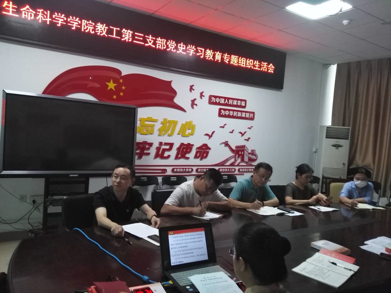 (通讯员:孟沫然)7月16日中午,学院教工第三党支部在9428cn太阳集团二楼中型会议室开展了党史学习教育组织生活会。校党史学习教育第六督导组成员莅临指导本次活动。