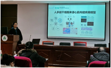 张冬卉教授(学院教工第二支部书记暨副院长)做了开场精彩报告,介绍了其课题组开展的人多能干细胞的心脏谱系分化与心脏疾病模型的构建工作。李爱涛教授(国重实验室副主任)分享了其团队在细胞色素P450酶的分子改造与催化应用方面、最近的突破性成果。药学科研团队成员(学院教工第二支部党员暨国地联中心教师代表)彭志红老师和胡琳珍副教授也就课题组研究的药物化学及天然药物化学方向最新的工作进展进行了汇报。此外,来自三个团队方向优秀的博士生代表与硕士生代表李俐(学院实验中心教师)、杨鹏程、张小栋、王斐、胡萍和阳航分别进行了课题研究工作的汇报。