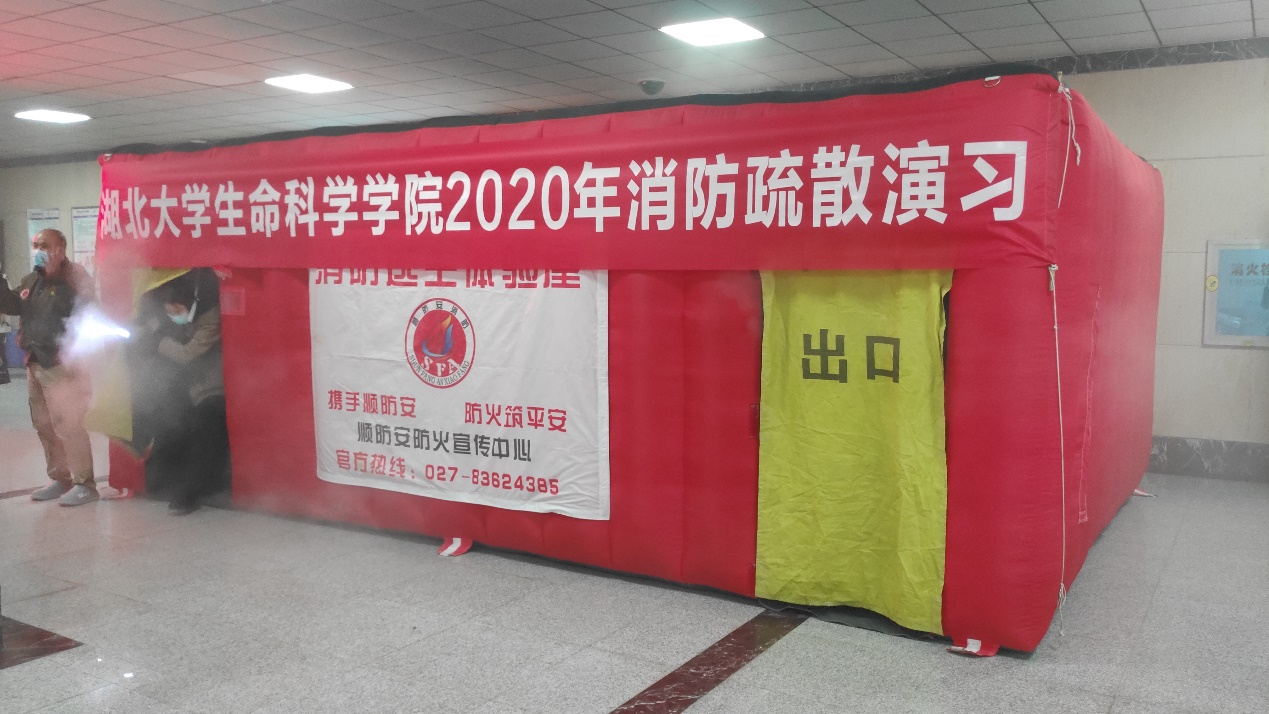 消防安全讲座结束后,师生们到生科院一楼进行消防灭火以及烟雾逃生演练。期间,侯教官组织大家分为5人一组,在事先搭建好的“烟雾迷宫”进行烟雾逃生演练。侯教官表示,“利用逃生手电在‘烟雾迷宫’中跟随安全标识行走,这种小迷宫能安全逃出的理论时间是25s,实际火灾中的黄金逃生时间为350秒。”在演练中,除刚开始的几组外,其余各组均于25s内通过迷宫。最后,侯教官向大家传授常见消防器材——干粉灭火器的使用要领,并让大家进行实际演练操作。