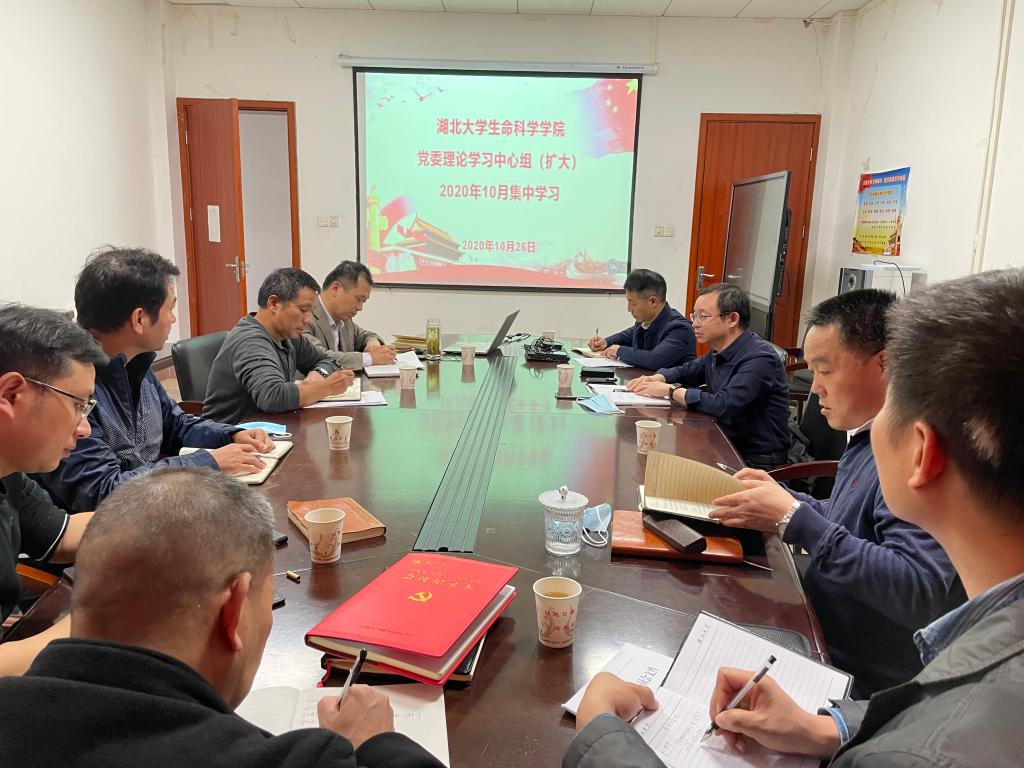 1026日下午,学院中心组成员按照《关于9428cn太阳集团古天乐202010月理论学习安排的通知》精神,在学院二楼会议室集中开展学习研讨。学院党委书记谢玉平带头领学,领导班子成员、学院党办成员全体参加。