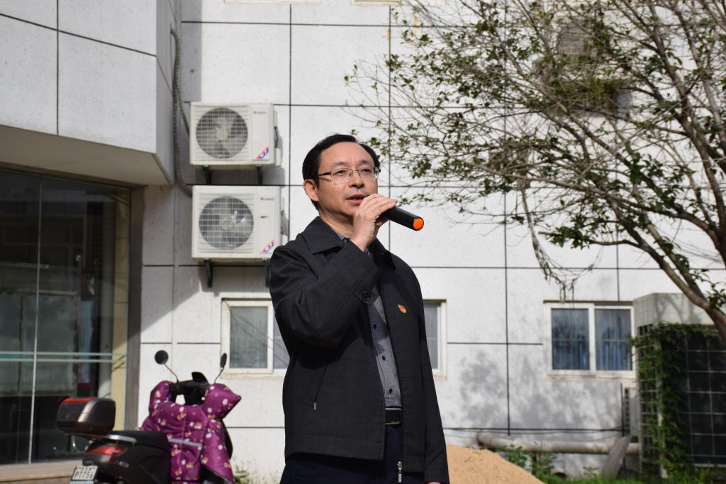湖大社区党支部书记刘毅、学院党委书记谢玉平,先后进行动员讲话。刘书记对此次活动做了简要的介绍,并祝愿生科院能够发展的越来越好。谢书记讲述了党员干部下沉社区的指导思想和工作目标,提倡全体教工党员多做志愿服务活动。