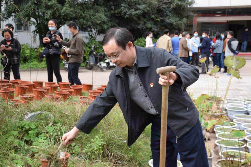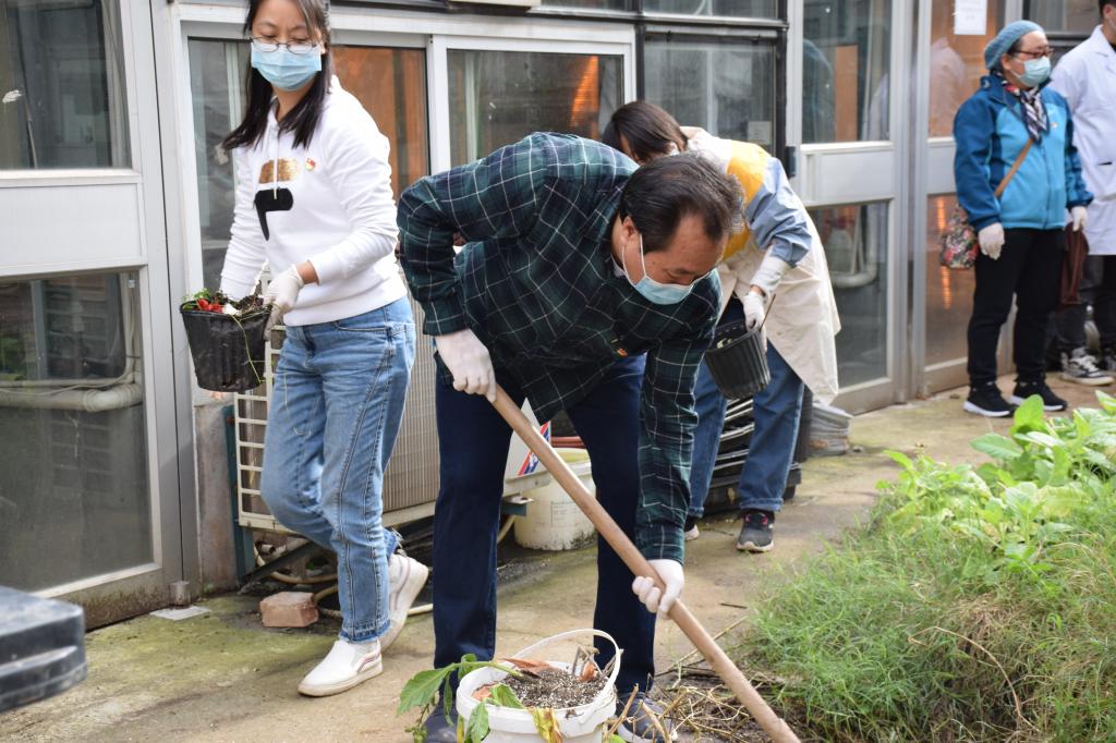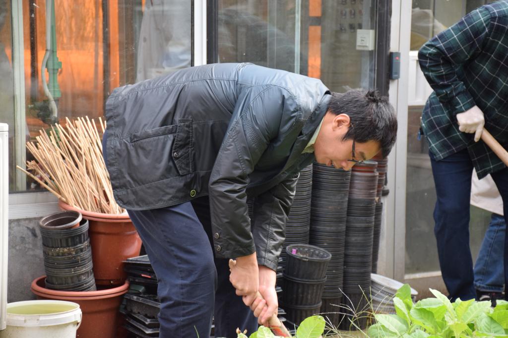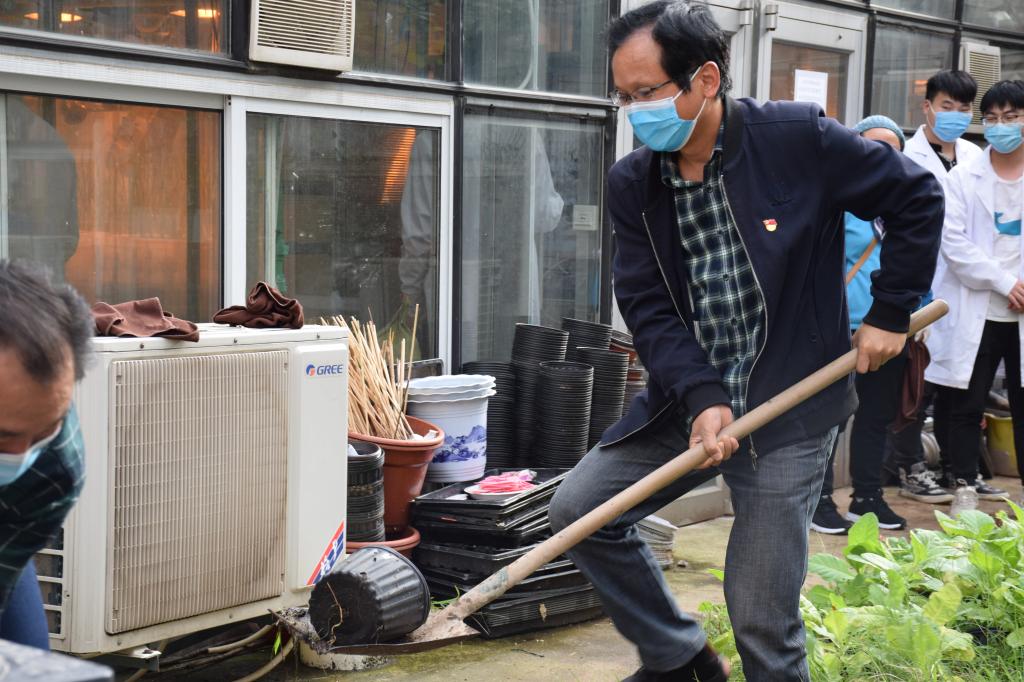 讲话结束后,全体教工党员领取工具,带上手套、拿起铁锹、携带抹布、提起水桶、撸起袖子,干的热火朝天,对学院大楼内走廊的仪器设备进行自检、整理、清扫、清洁,对温室内、温室周边环境进行清洁、清扫、整理、美化。在劳动中出力出汗,在劳动中发光发热。