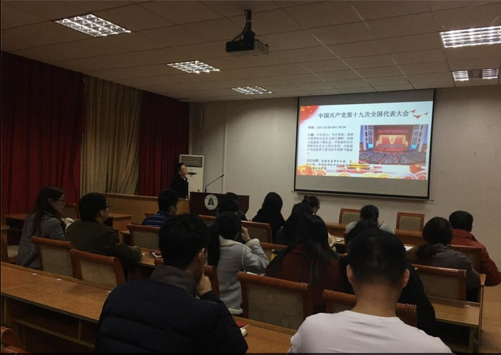学习内容主要围绕十九大作出了的重大政治判断、重大理论概括、重大实践总结和重大战略部署等四个方面展开,对党所处的新的历史方位、我国社会主要矛盾的新变化、习近平新时代中国特色社会主义思想进行了学习,并剖析了十九大确立的新目标、新方略和新举措。支部书记丁威也特别为大家解读十九大报告中有关教育特别是高等教育相关的内容,习近平总书记在“过去五年的工作和历史变革”中,指出“教育事业全面发展,中西部和农村教育明显加强”;在“贯彻发展新理念,建设现代化经济体系”中,指出“加快建设创新型国家”,创新型国家建设离不开科技创新,离不开高等院校的参与;在“提高保障和改善民生水平,加强和创新社会治理”中,指出“优先发展教育事业。加快一流大学和一流学科建设”,实现高等教育内涵式发展与大家息息相关。同时活动也号召大家,不忘初心,牢记使命,在实践中加强党性修养,争做时代先锋。