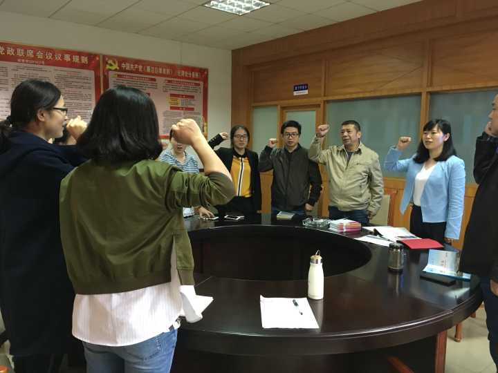 2017年10月11日教工第一支部在生科院小会议室开展支部主题党员活动——《榜样》观后交流讨论会,会议由支部书记张黎主持。