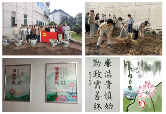 学院党委始终坚持将党风廉政建设工作摆在突出位置,为深入推进清廉学院建设,厚植廉洁文化土壤,学院于2022年4月创建“廉莲”文化品牌,现育有十余盆莲花,并专门成立莲花志愿服务队对莲花进行养护和文化价值挖掘。结合“芯宠辅导站”和劳动教育工作,学院根据莲花生长周期开展翻土晾晒、收集种子等特色活动,以莲养廉、以莲育廉;聚焦莲花蕴含的文化符号,开展“莲花”为主题的廉洁文化艺术作品征集活动,将廉洁文化和书画艺术巧妙融合;在二楼走廊布展“廉莲”文化宣传海报,实现廉洁文化上墙,融廉入景、廉洁入心,让廉洁之“莲”在学院绽放。