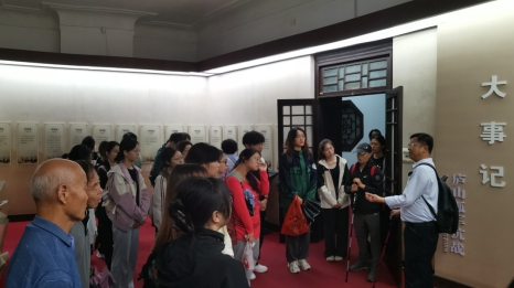 师生按照实习小组进行参观学习,教师党员和8名发展对象通过微党课的方式带领大家重温党史,了解庐山保卫战的英雄事迹。朱钰潇同学结合展厅内容对庐山会议的背景及意义进行了介绍,庐山会议旧址是具有重大革命历史意义的爱国主义教育基地,三次庐山会议在中国共产党和中华人民共和国的历史进程中都产生了重大影响。王伊帆同学和殷与同同学分别进行了庐山谈判内容和庐山抗战背景的微党课介绍。